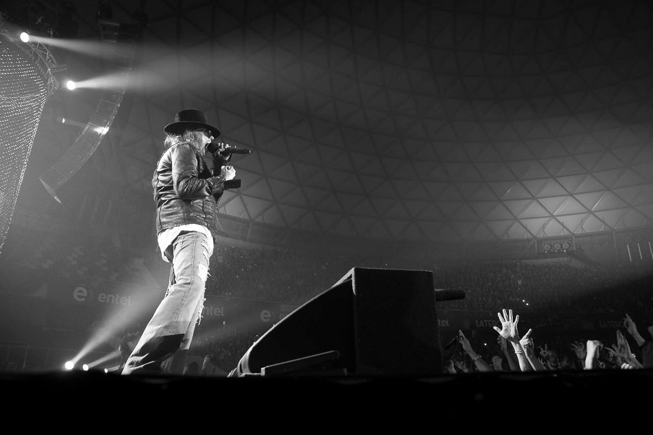 Hubo que armarse de bastante paciencia para ver nuevamente en nuestro país a Guns ‘n Roses, y especialmente, a un Axl Rose que venía está vez en mejor forma física que en su presentación del año anterior. El concierto estaba fijado para las 11 de la noche, pero el grupo recién salió 2 horas después. Quienes se quedaron para disfrutar del show, pudieron disfrutar de una presentación potente que tuvo momentos muy altos con temas como “Estranged”, “Rocket Queen” y “Paradise City”. La producción escénica le daba una espectacularidad visual al escenario de dos niveles, y que obviamente Axl sabía aprovechar al máximo corriendo de un lateral al otro.