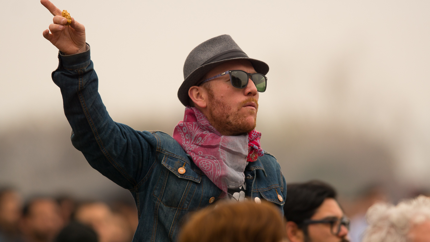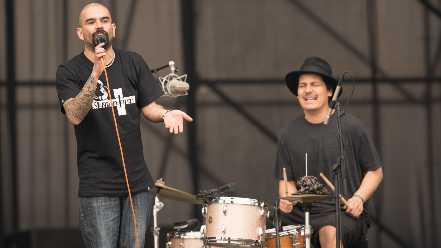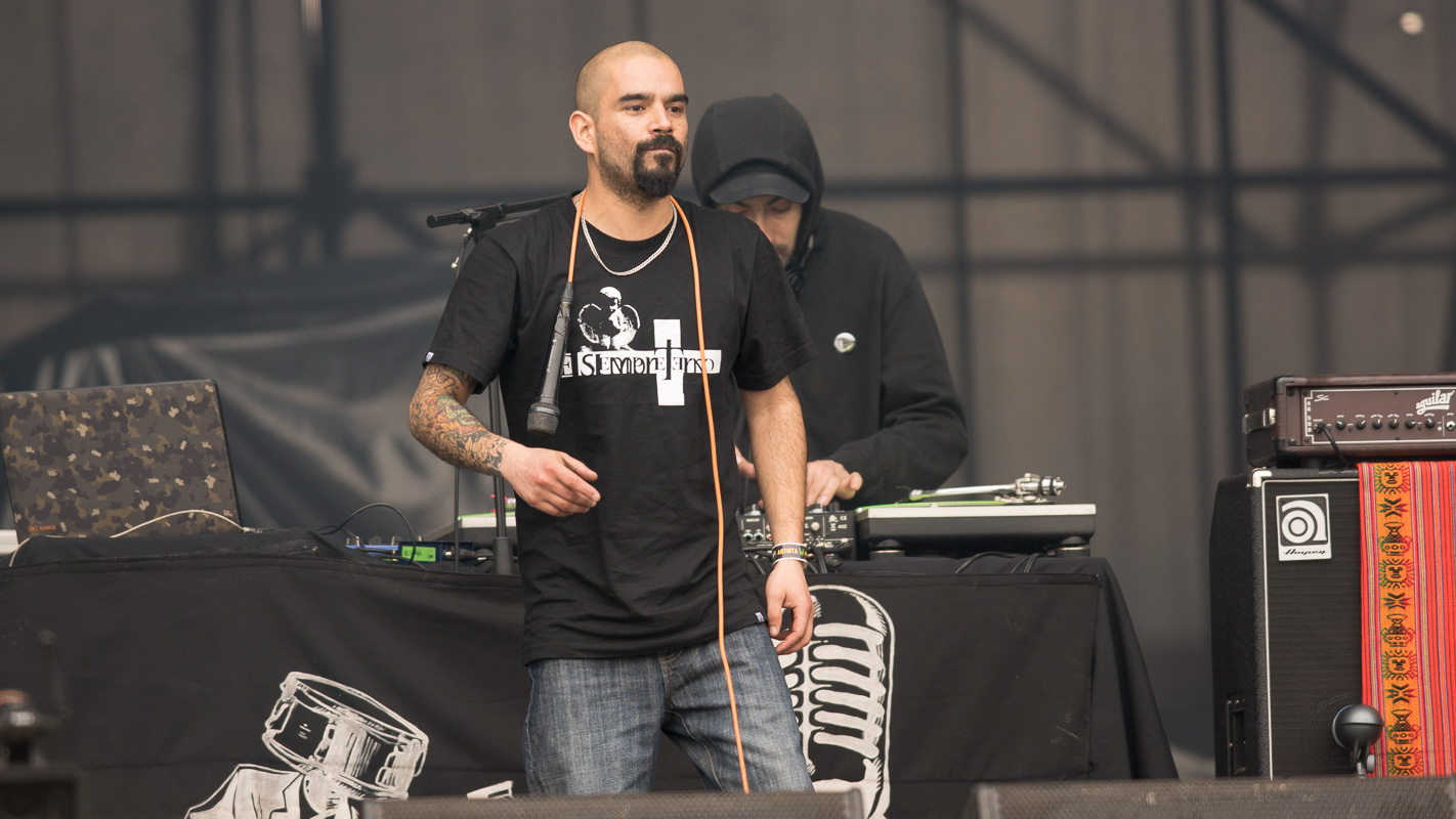 La banda de Hip Hop Fusión nacional, “Cómo asesinar a Felipes”, se presentó en el escenario Escudo Stage 2 a eso de las 13.15 horas del domingo premunidos de la artillería pesada de las rimas crispadas y corrosivas que dispara su siempre locuaz frontman y líder, “Koala” Conteras.